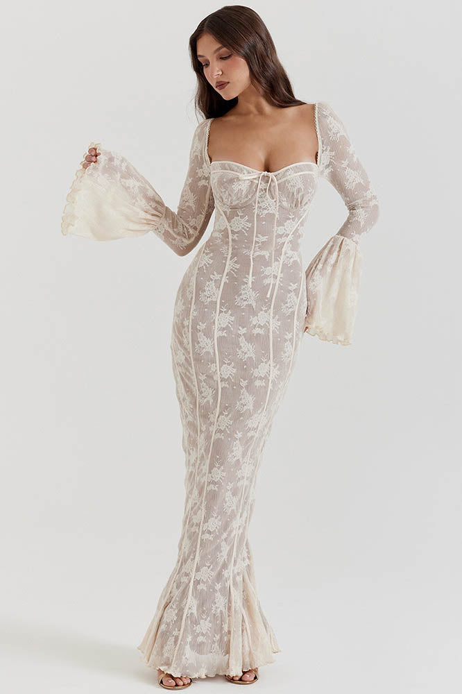 This lace dress blends sultry structure with French elegance. The open back and mermaid hem highlight your curves—perfect for parties, date nights, or stunning INS-style photoshoots.