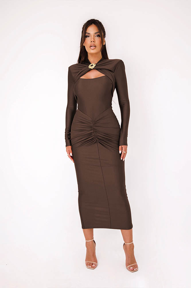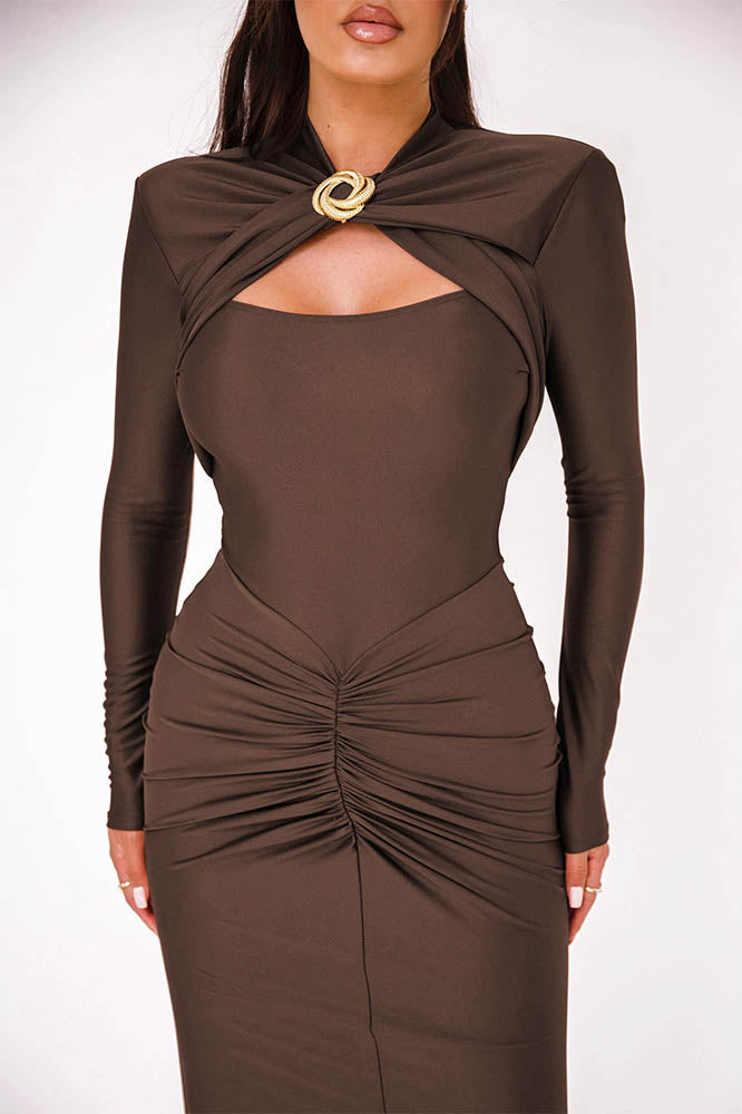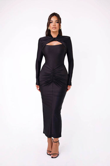 This black and white colorblock maxi dress features a clean crew neck and a flattering slim fit. With long sleeves and a chic silhouette, it's perfect for transitional seasons—ideal for work, dates, or evening outings.