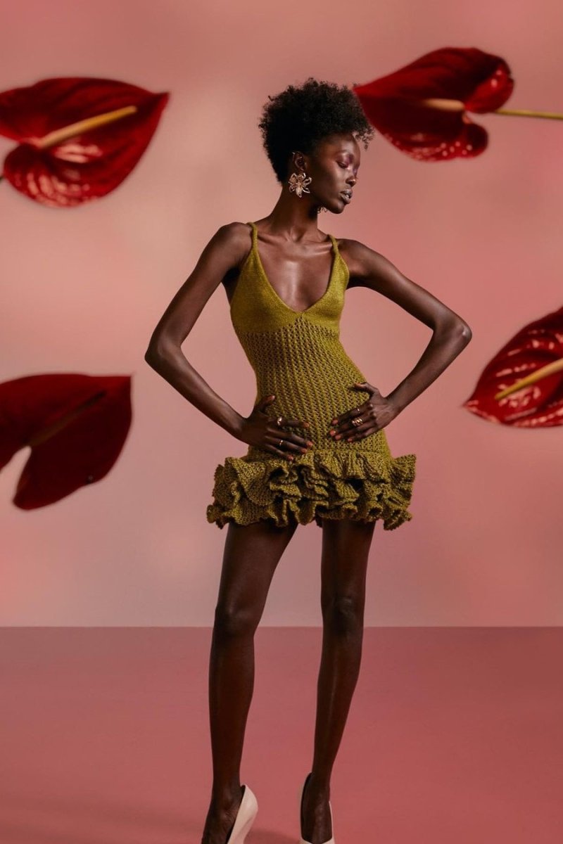 Embrace effortless style with the Crochet Ruffle Mini Dress, featuring a flattering V-neckline and sleeveless design. This dress is adorned with delicate crochet detailing and playful ruffle accents that add a touch of whimsy to your look.