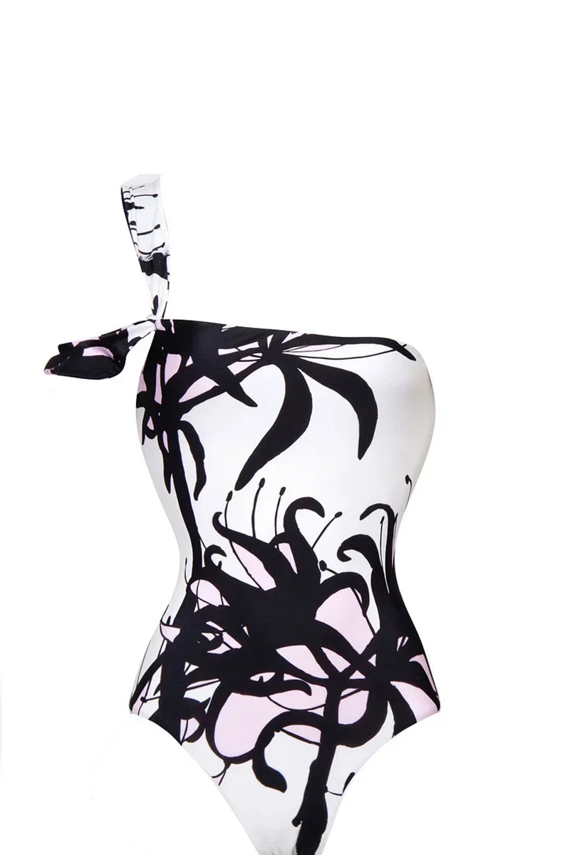 This Chinese ink print one-piece swimsuit set combines traditional artistry with modern swimwear design. Featuring elegant ink wash floral prints inspired by classic Chinese art, the swimsuit offers a sophisticated and cultural aesthetic. The bold yet delicate print, paired with a flattering cut, creates a stunning visual effect while enhancing the natural shape of the body. Made from high-stretch fabric, it ensures comfort and flexibility, making it perfect for a stylish beach day or resort vacation.