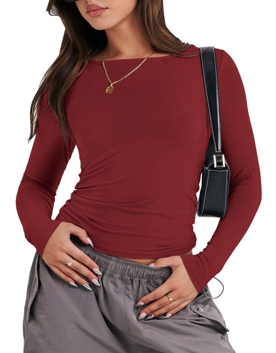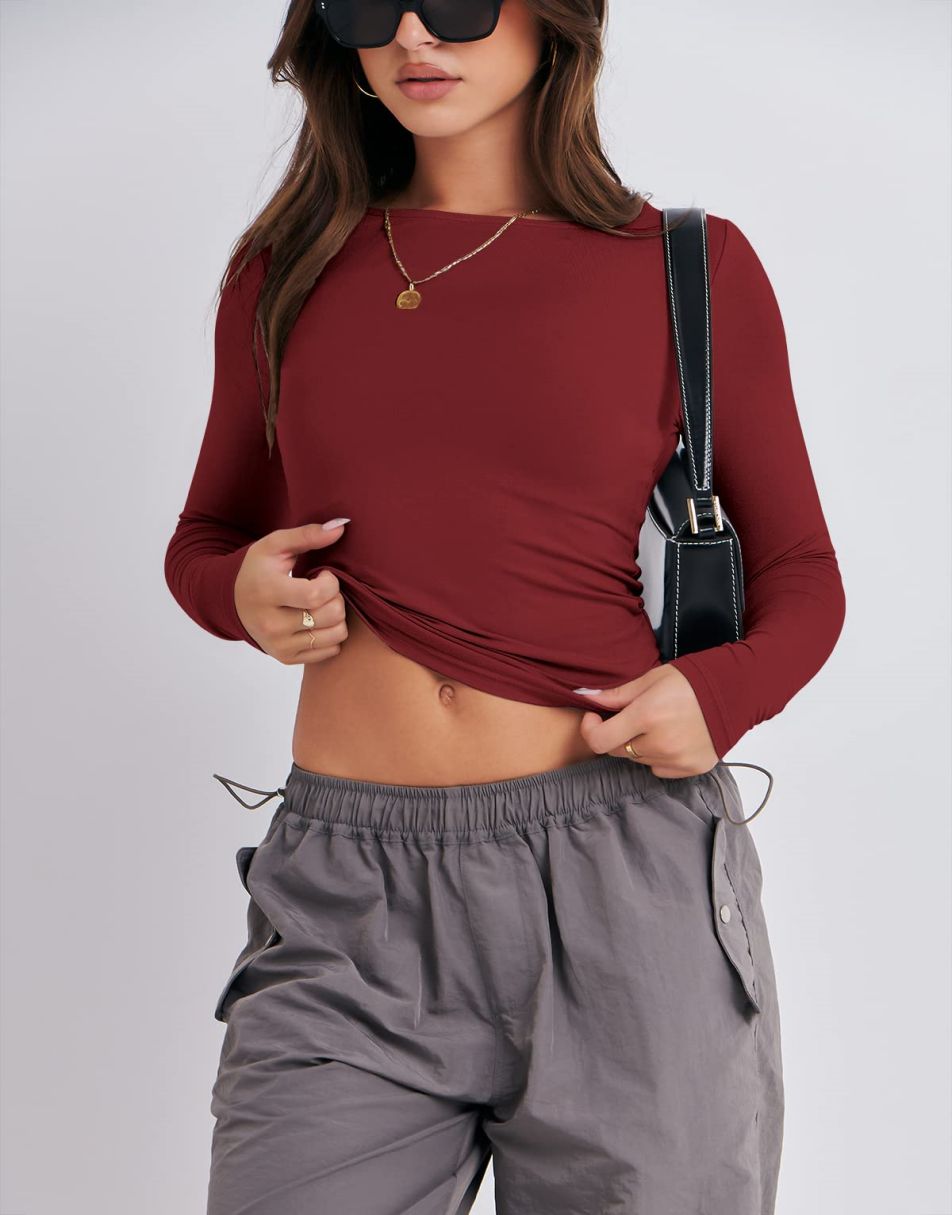 • Fit: Tight long-sleeve crop top with crew neckline