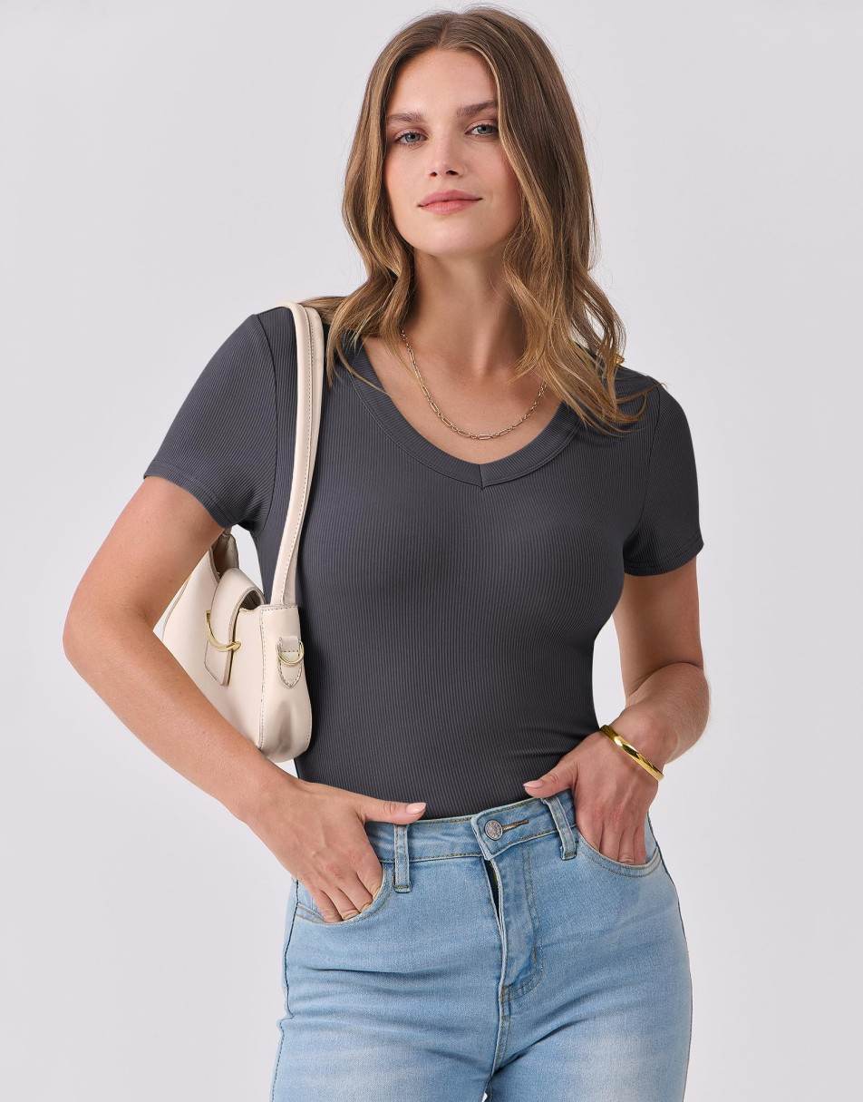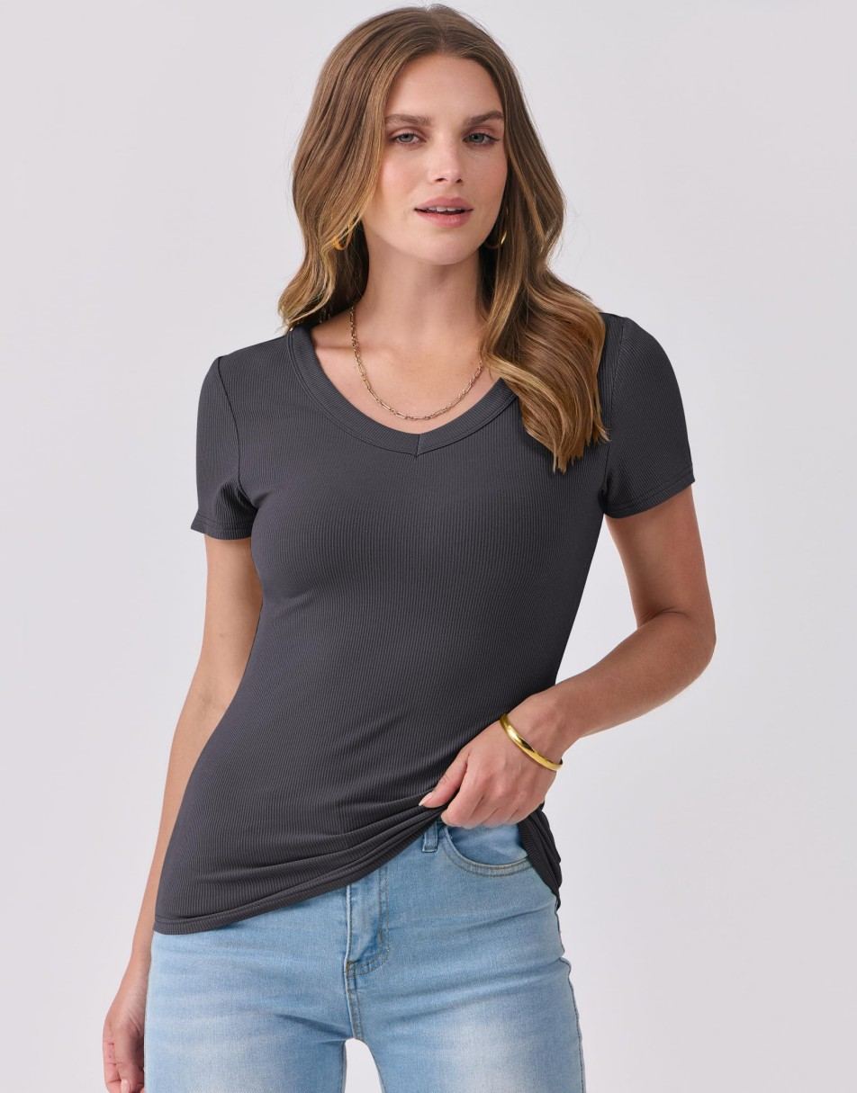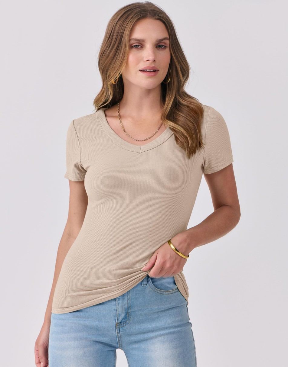 Alair is the definition of simple sophistication. This ribbed V-neck tee flatters with its fitted silhouette and soft, stretchy feel — perfect for warm summer days or layering under blazers and cardigans. Effortless, timeless, and endlessly versatile, Alair is your new go-to for both work and play.
