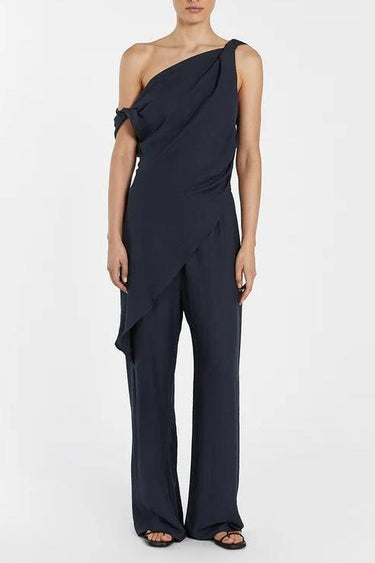 Asymmetrical Twist Detailing Top Linen Blend Pants Set