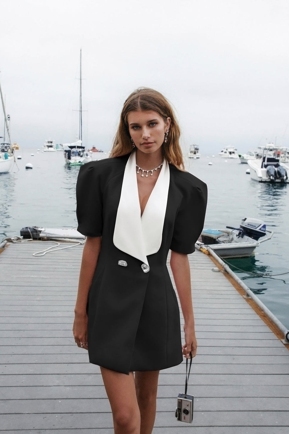 • Neckline: Deep V-neck