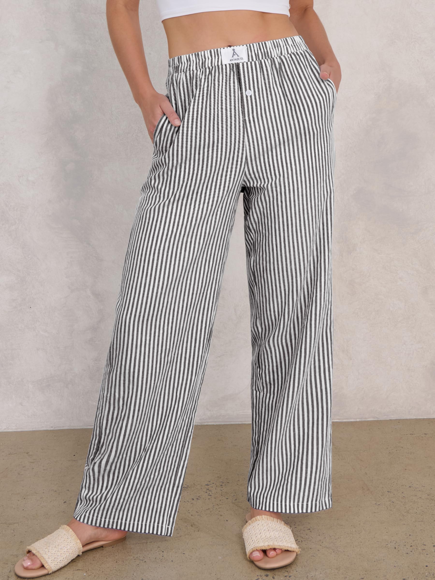 Livia brings effortless comfort with a touch of playful charm. Crafted from soft, breathable rayon, these striped gingham pants are perfect for lounging, travel, or laid-back days out. The relaxed fit and elastic waistband ensure easy movement while keeping you stylish and comfy all day long.