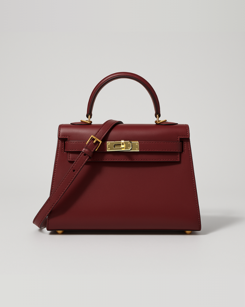 Designed in beautiful leather, creating an irresistibly chic and luxurious look. Its petite size and trapezoid shape makes it the perfect accessory for both the fashionably savvy and sophisticated trendsetters. Mia, our mini crafted in a deep wine red leather is ideal for everyday use, yet with enough space to store all the everyday essentials.