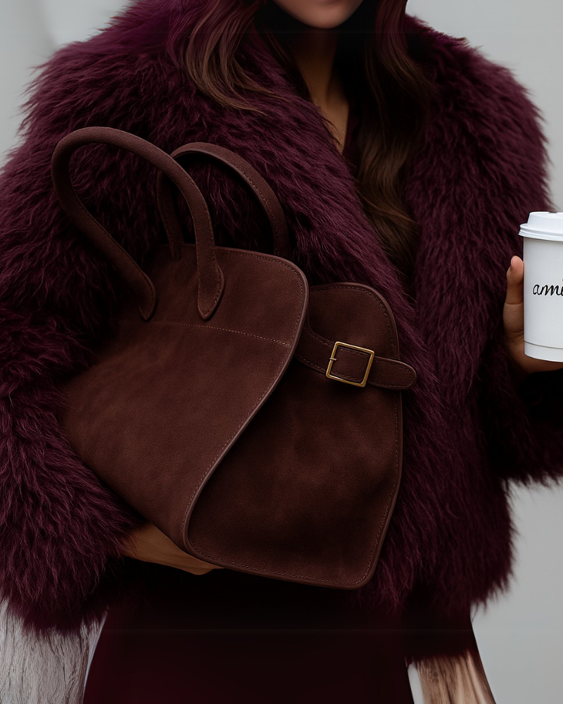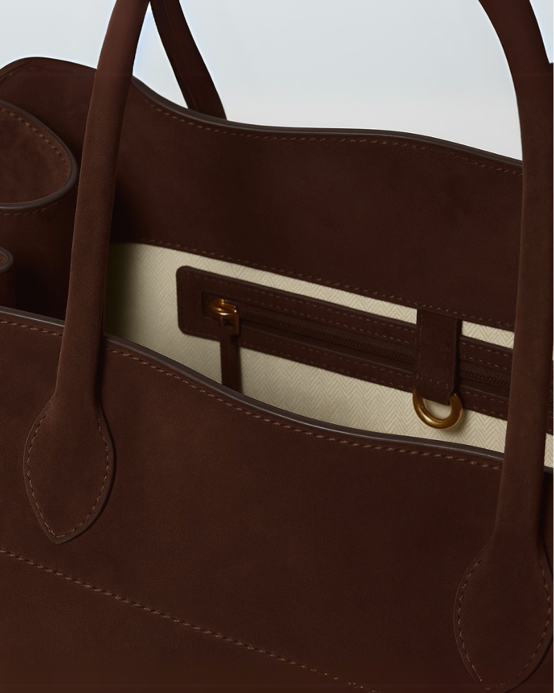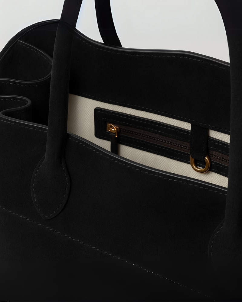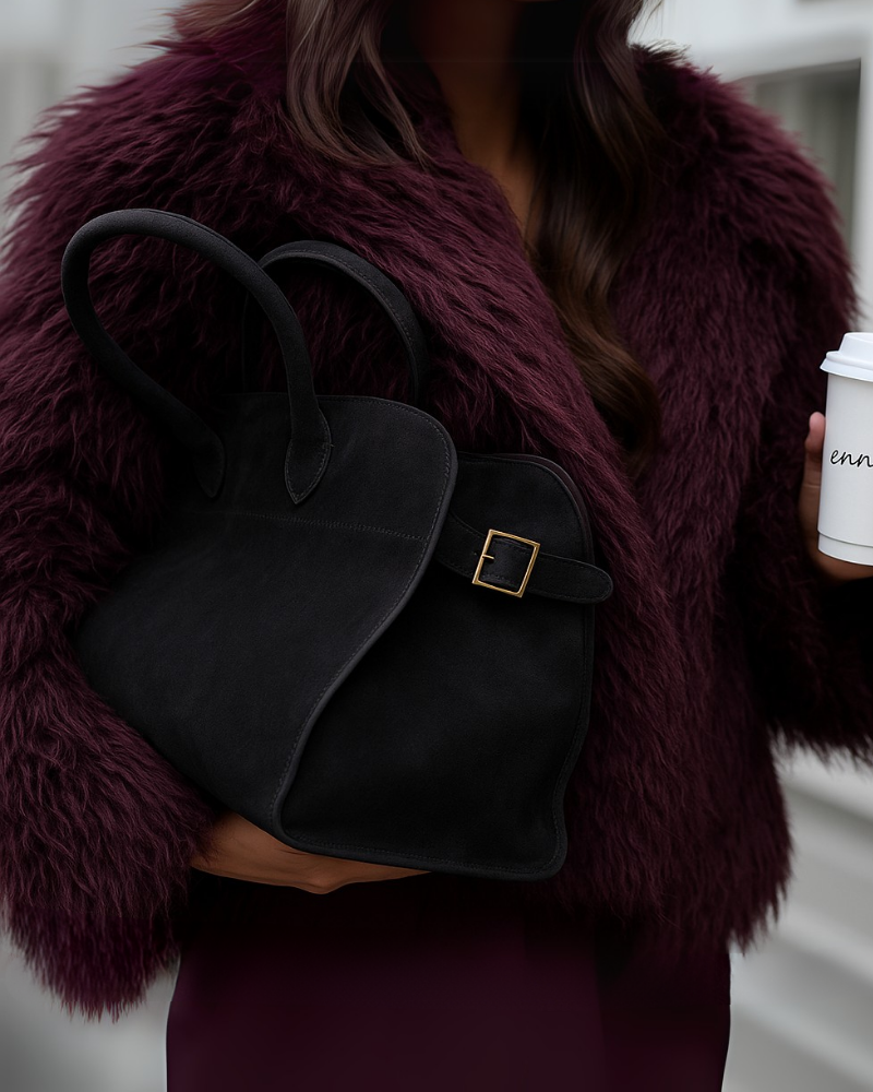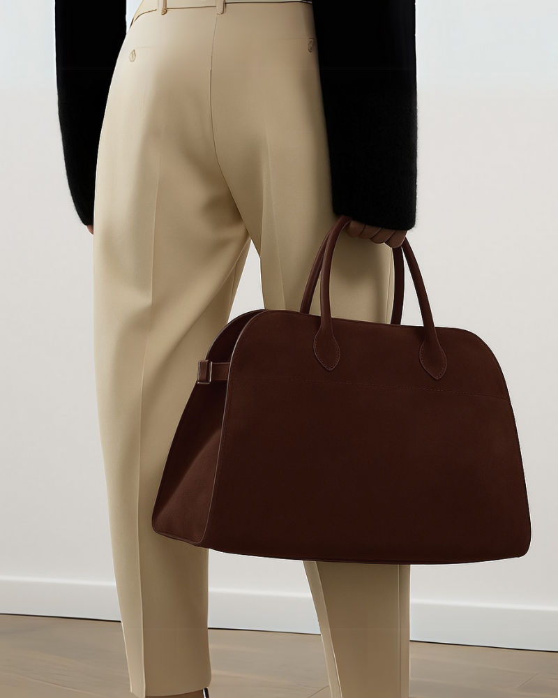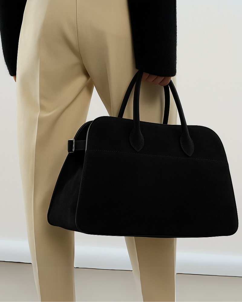 An all-season essential, the Suede Tote is a refined blend of texture and function. Crafted from soft luxury suede in timeless black or rich brown, it offers spacious practicality with effortless elegance — the perfect companion for work, travel, or a polished everyday look.