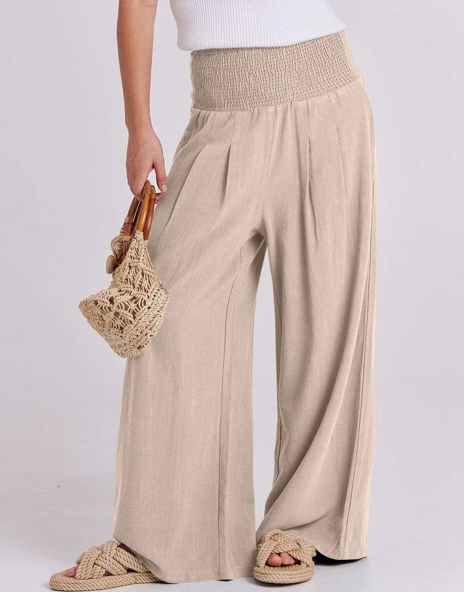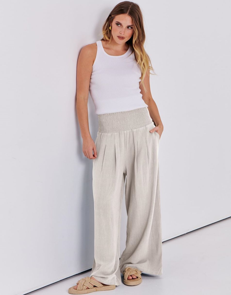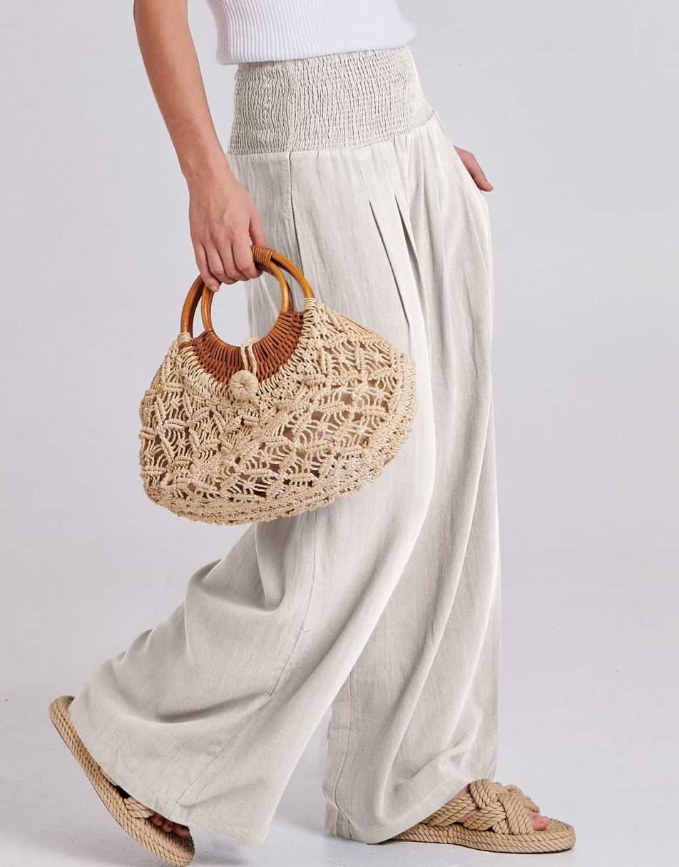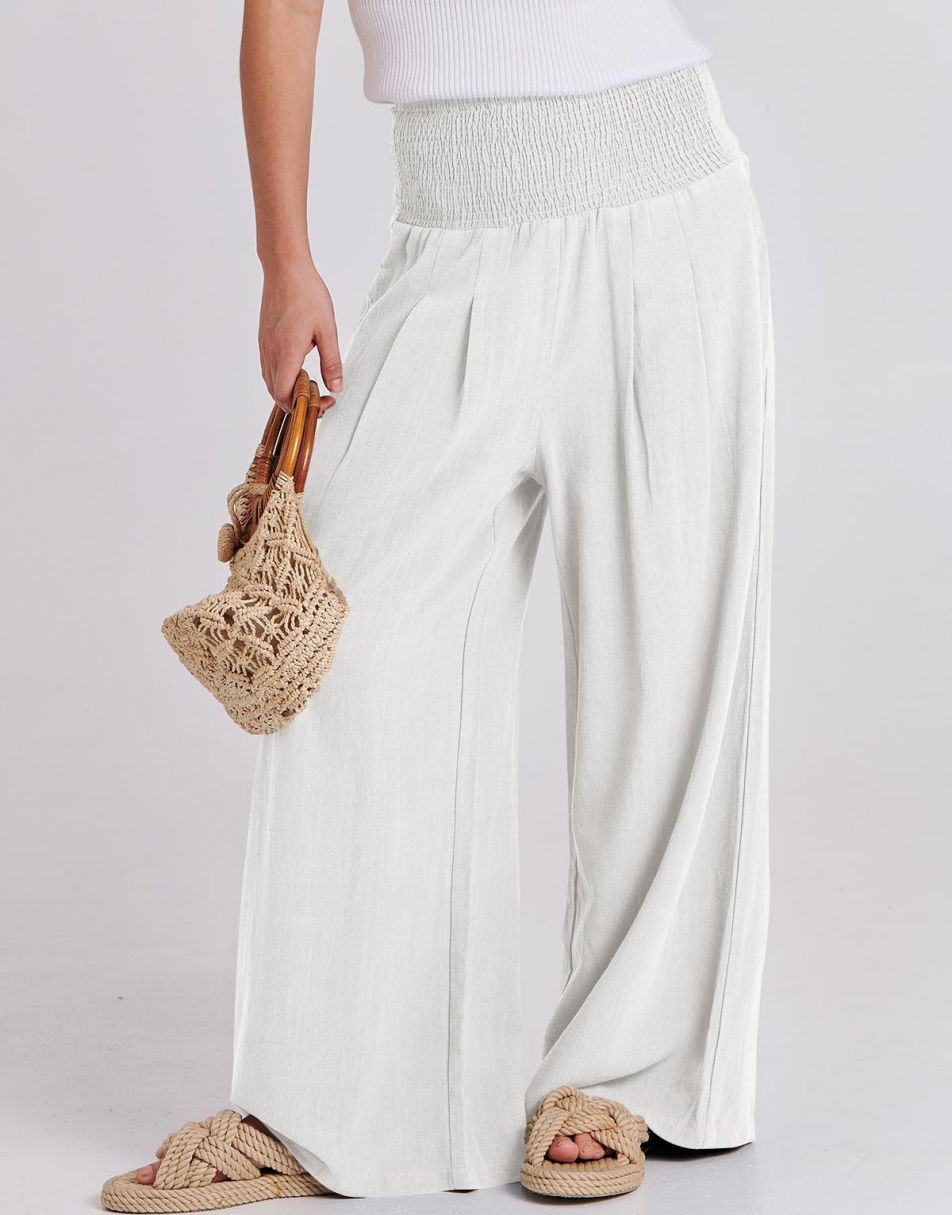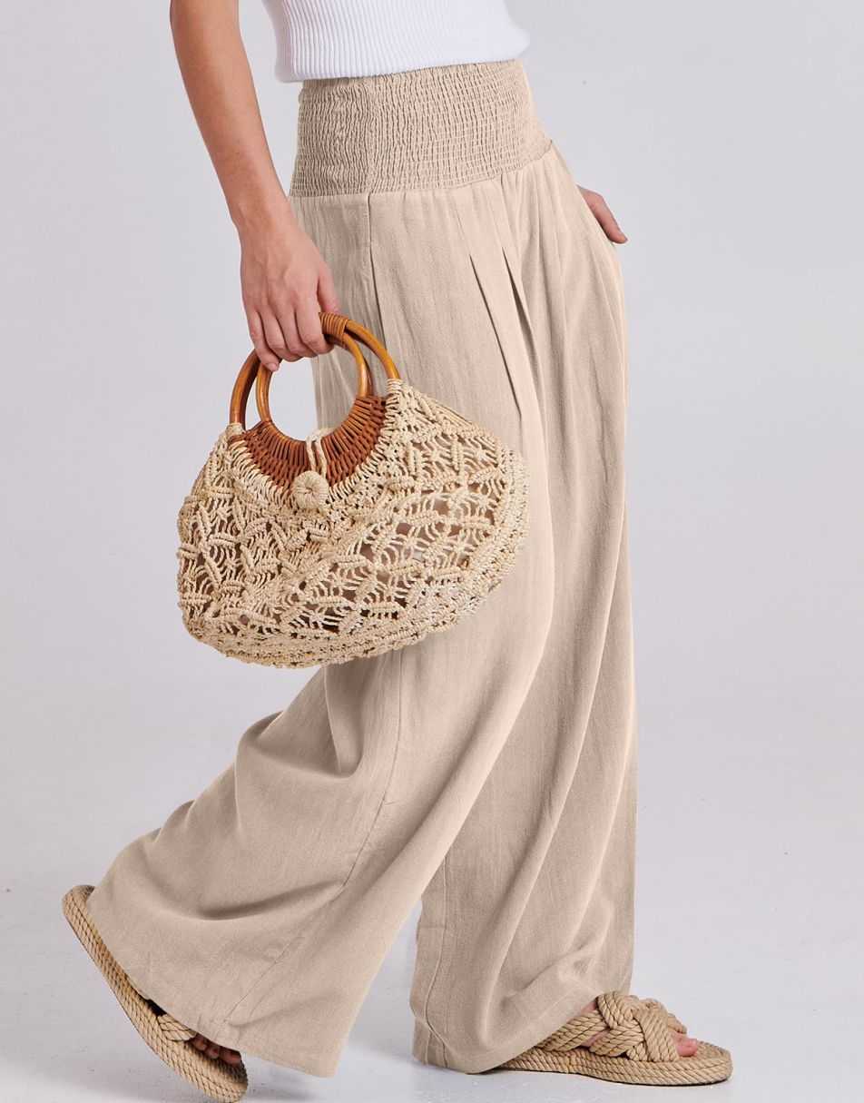 Weston captures the essence of effortless boho elegance. Crafted from a breezy linen–rayon blend, these wide-leg palazzo pants flow beautifully with every step. The smocked high waist flatters your figure while keeping you comfortable from sunrise strolls to sunset dinners. Lightweight, relaxed, and timeless — the perfect piece for sunny days and seaside escapes.