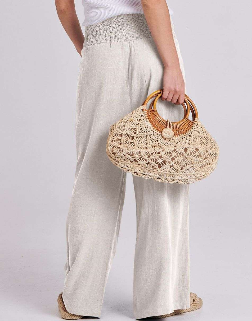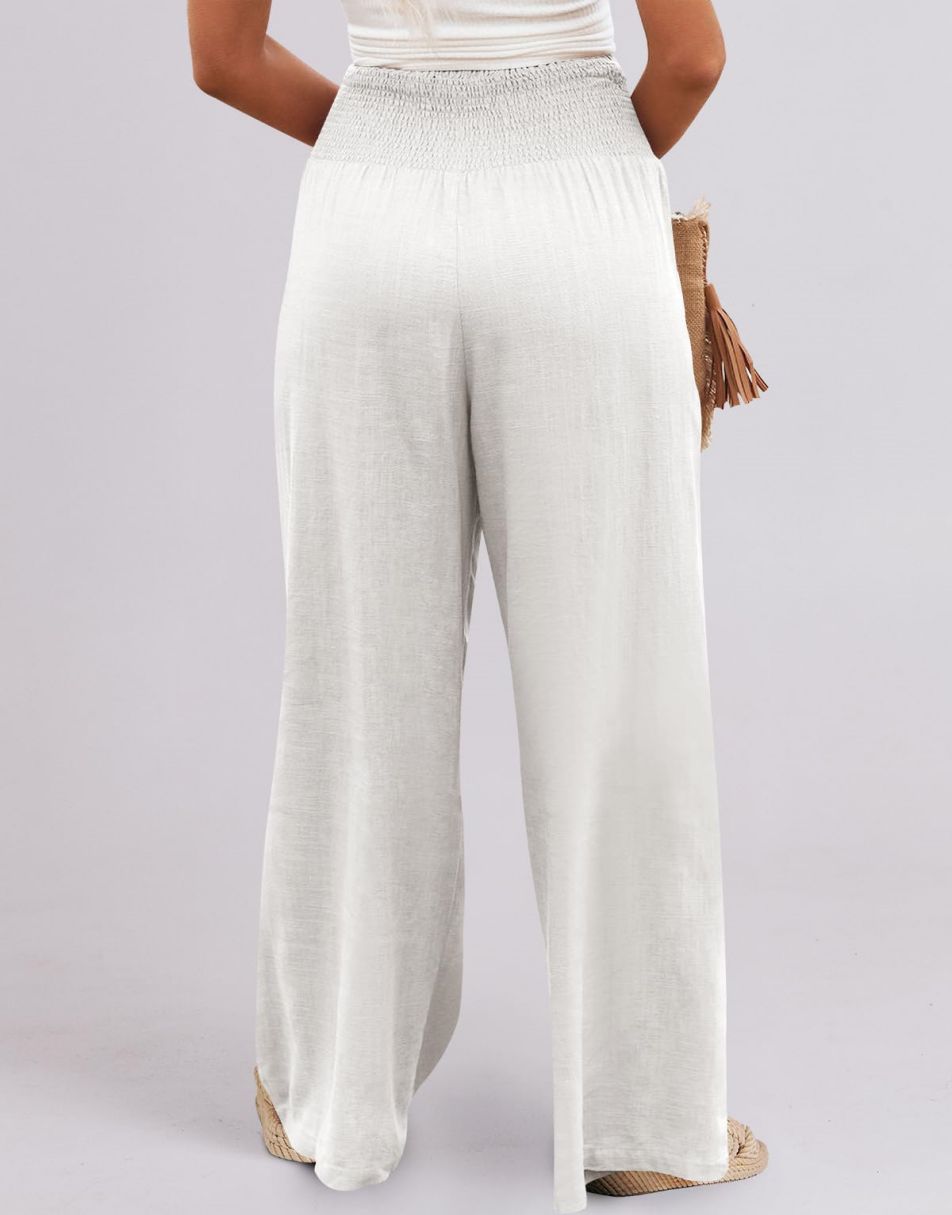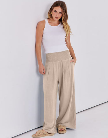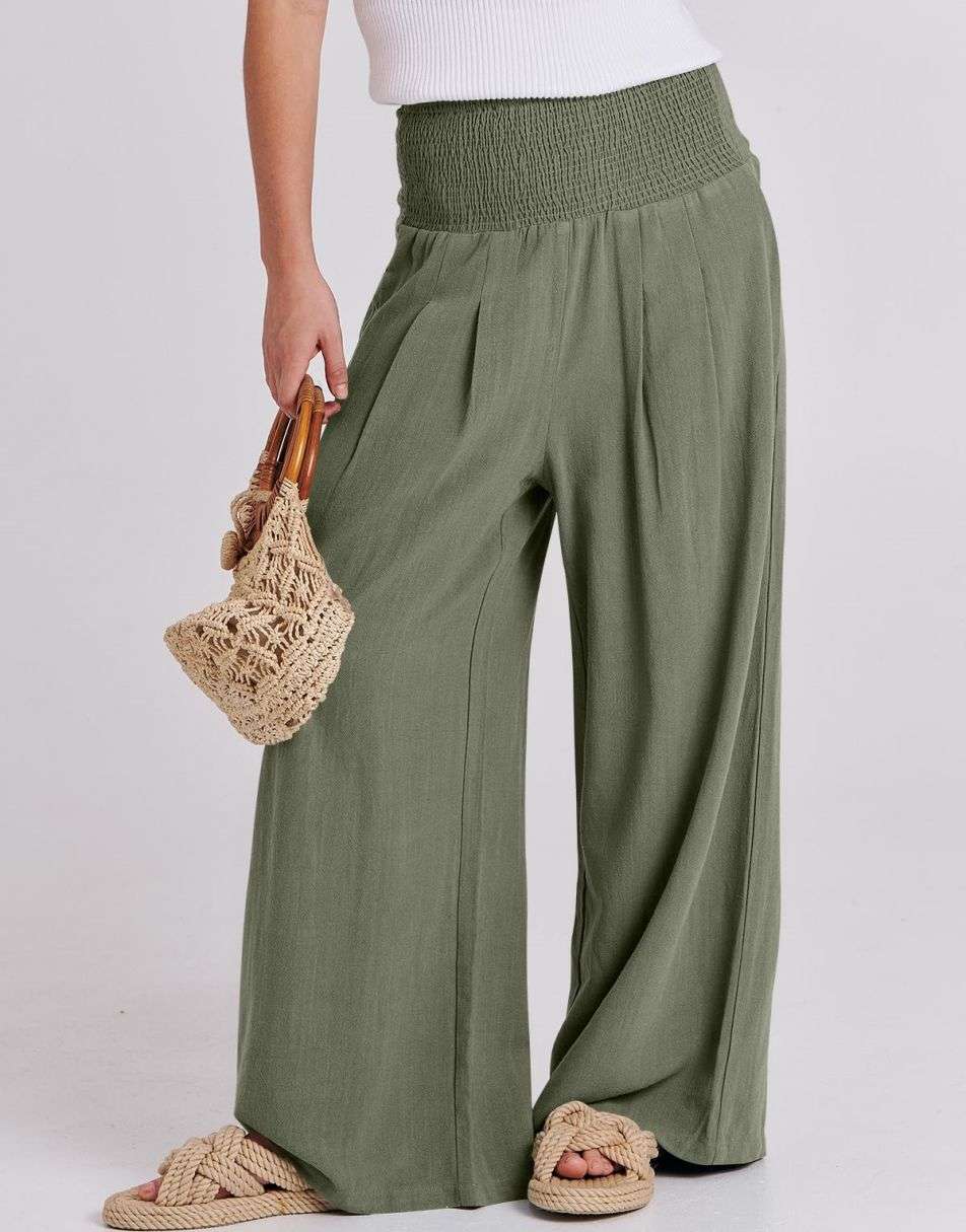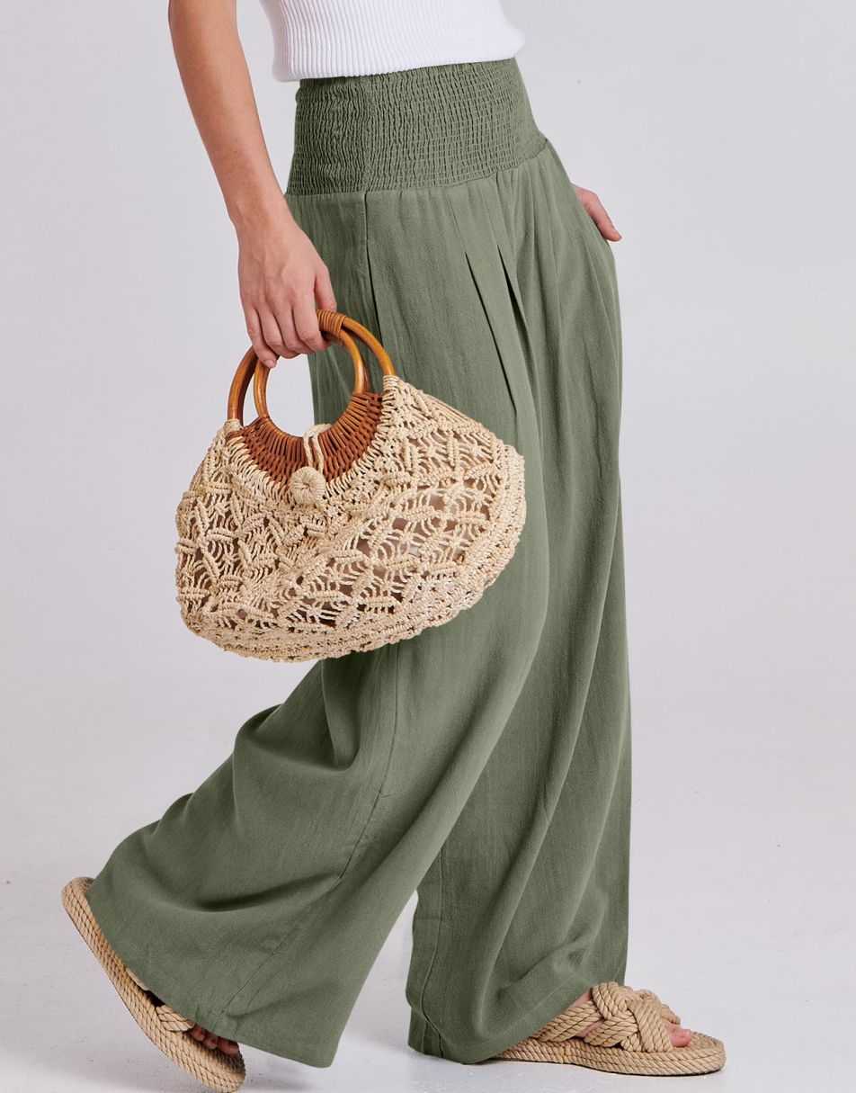 Weston captures the essence of effortless boho elegance. Crafted from a breezy linen–rayon blend, these wide-leg palazzo pants flow beautifully with every step. The smocked high waist flatters your figure while keeping you comfortable from sunrise strolls to sunset dinners. Lightweight, relaxed, and timeless — the perfect piece for sunny days and seaside escapes.